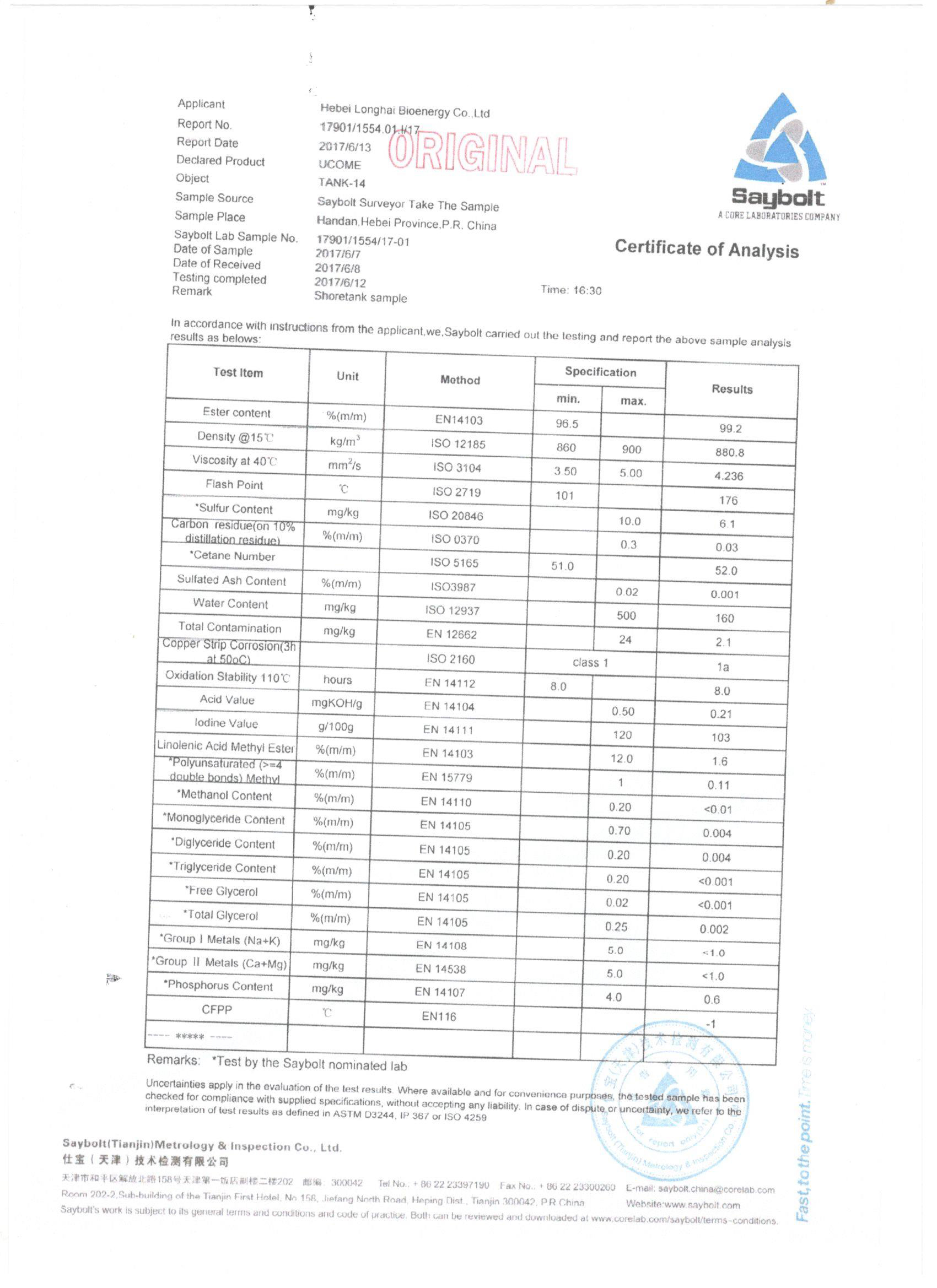May blend with petrochemical diesel base on 3:7 maxium, make the